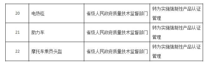 经李ke强签批,国务院在17年6月29日印发《关于调整工业产品生产许可证管理目录和试行简化审批程序的决定》。该决定规定19类产品取消事前生产许可证管理,电热毯、助力车、摩托车乘员头盔3类产品实行强制性产品认证(即3C认证),不再实施生产许可证管理。