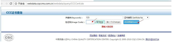 第三步:选择“证书编号"——然后再输入“3C证书号”——“点击查询”