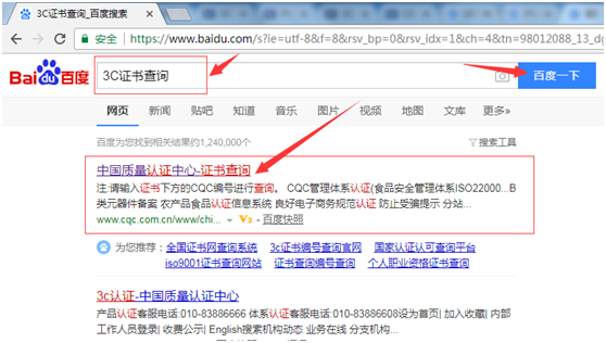 第1步:打开浏览器,输入“3C证书查询”,点击搜索找到“中国质量认证中心-证书查询”的网页,点击进入guan网。