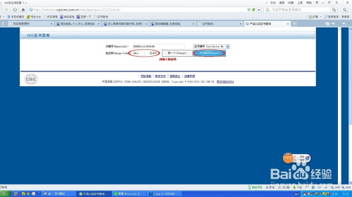然后再输入“CCC证书号”——选择“证书编号"——“点击查询”,需要填入正确的验证码才可以查询
