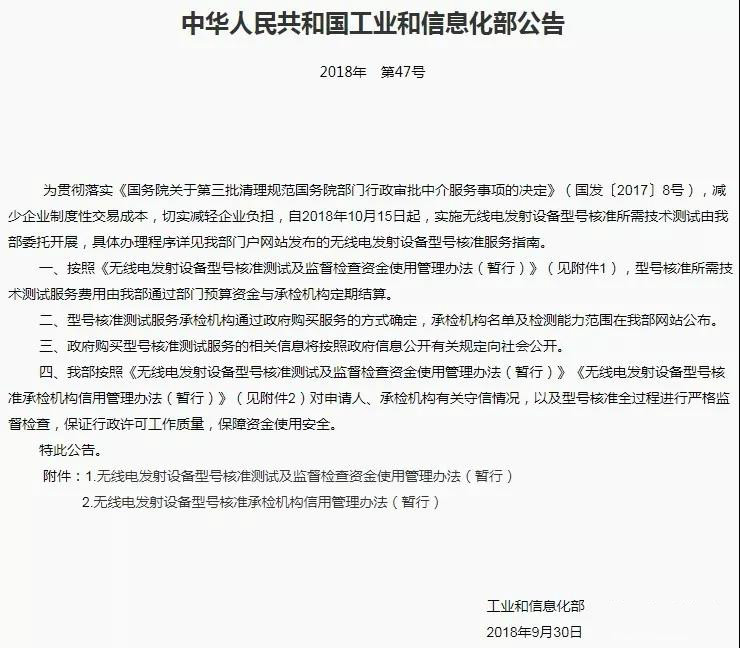5.如果产品测试通过,对厂家而言,SRRC免费。